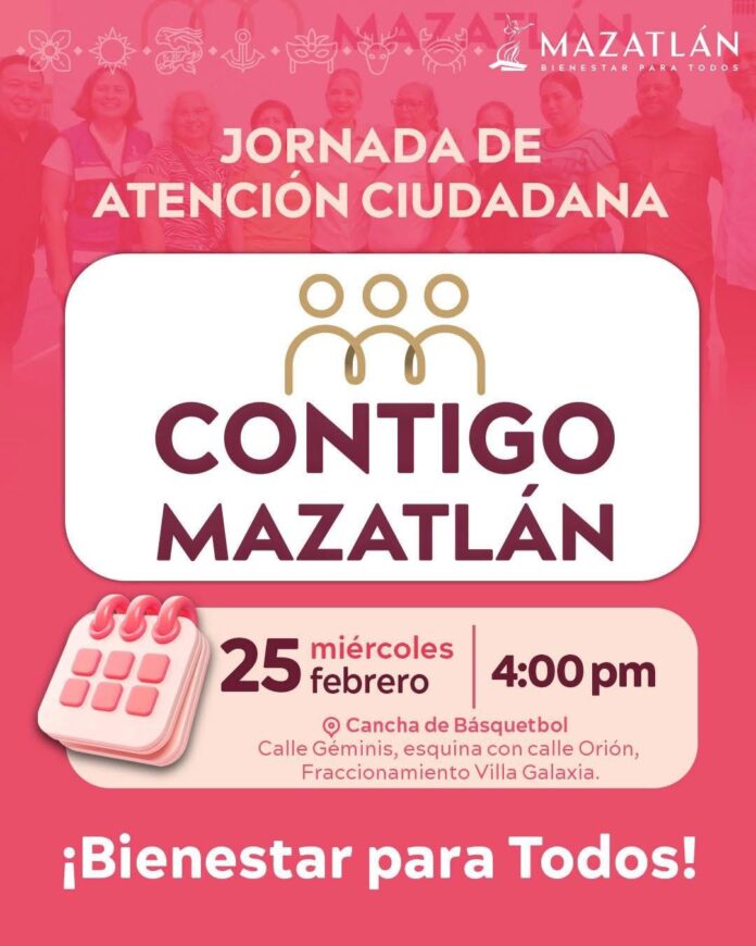 La Presidenta Municipal, Estrella Palacios Domínguez, encabezará una nueva jornada de atención ciudadana del programa “Contigo Mazatlán”, acompañada por su Equipo del Bienestar, integrado por directoras y directores del Ayuntamiento y organismos paramunicipales.