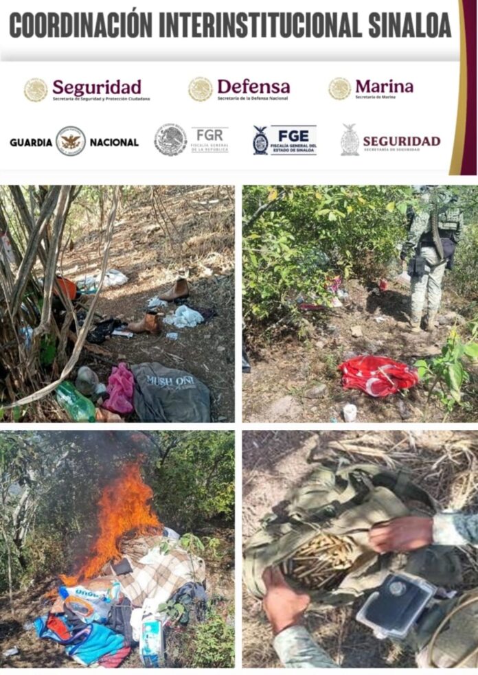 Elementos del Ejército Mexicano, en coordinación con la Guardia Nacional, la Secretaría de Marina, la Secretaría de Seguridad y Protección Ciudadana, la Fiscalía General de la República, la Fiscalía General del Estado y la Secretaría de Seguridad Pública del Estado, a través de la Policía Estatal Preventiva, localizaron y deshabilitaron dos campamentos en distintos poblados del municipio de Concordia, donde además se aseguraron 2,600 cartuchos.