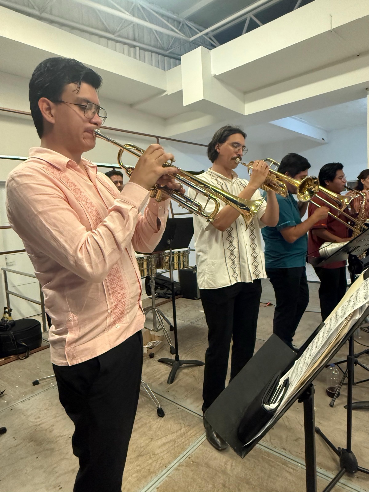 Danzazón se conforma además por músicos con perfiles diversos y en formación constante. En la trompeta, Sebastián Cedillo desarrolla una línea que articula interpretación, difusión e incluso interés por la investigación en el ámbito de los metales, con una visión orientada hacia la música de concierto y los arreglos contemporáneos.