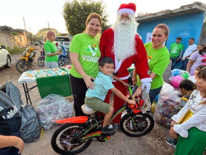 Un momento de alegría y felicidad pasaron niños, niñas y decenas de familia de la comunidad de Apoderado, en Rosario, en una armónica convivencia organizada por las regidoras del Partido Verde, Ana Quevedo y Rosy Ruiz, para poder celebrar la Navidad.