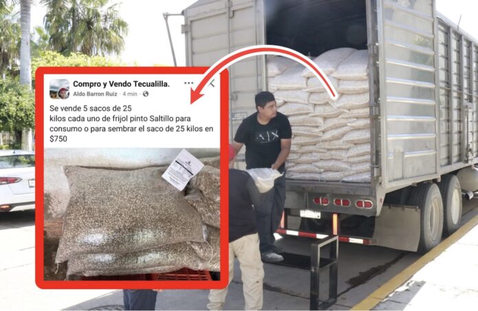 Mediante redes sociales empezó a circulase una publicación donde una persona, vecina de la comunidad de Tecualilla, ofrecía estos sacos de 25 kilos de semilla a un precio de 750 pesos por costal.