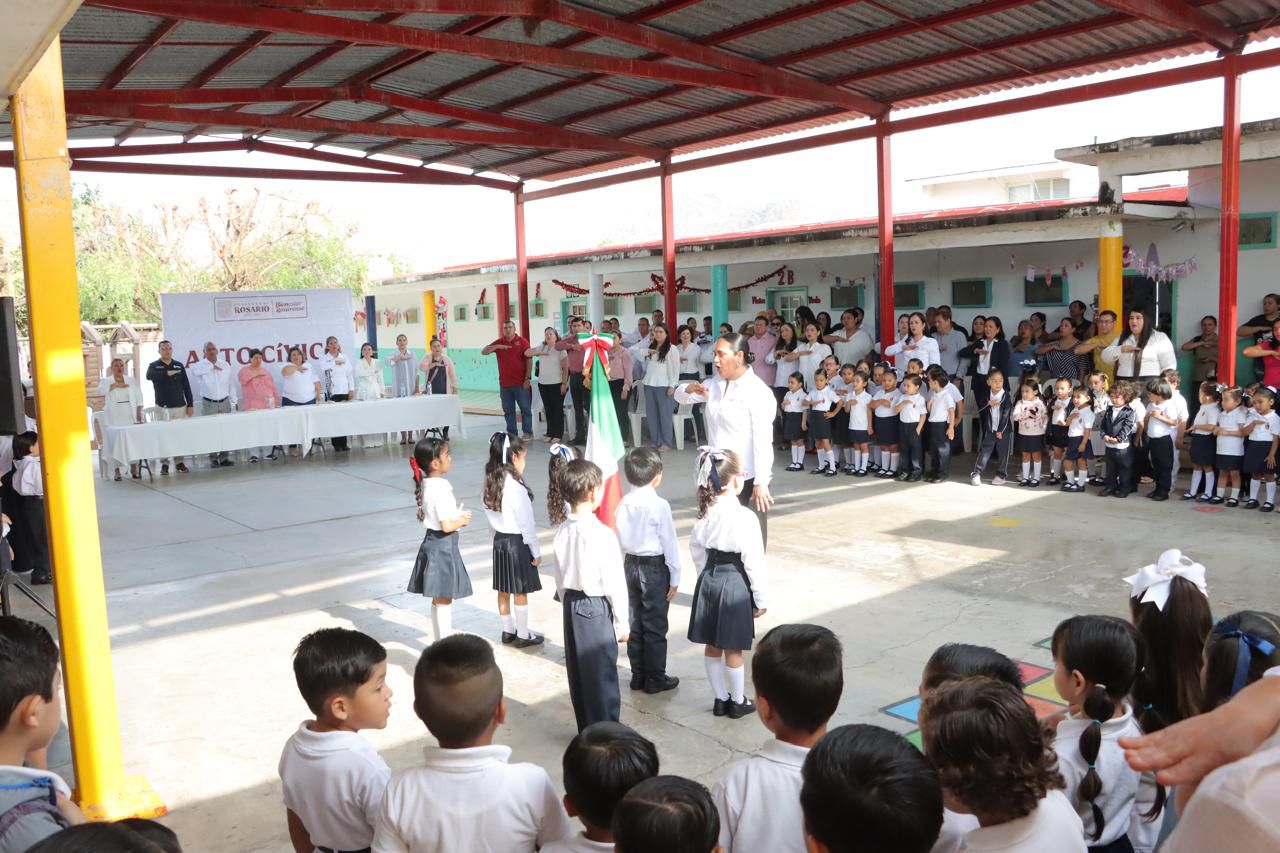 El Gobierno Municipal de Rosario participó en la ceremonia de Lunes Cívico, la cual se llevó a cabo en las instalaciones del Jardín de Niños “Doctor Martiniano Carvajal”, con el objetivo de fomentar los valores cívicos desde la educación inicial.