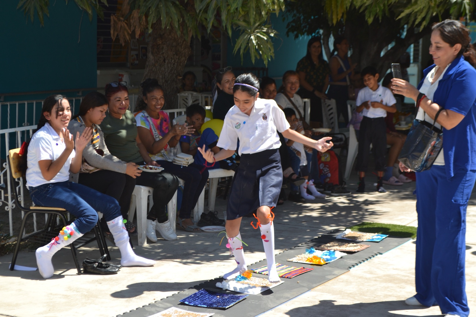Como parte de la jornada, se instalaron diversas estaciones sensoriales en las que los asistentes participaron activamente. Además, se llevó a cabo una pasarela sensorial sobre tapetes elaborados por alumnos y padres de familia, donde los niños modelaron calcetas disparejas decoradas con materiales coloridos, simbolizando la inclusión y la diversidad.