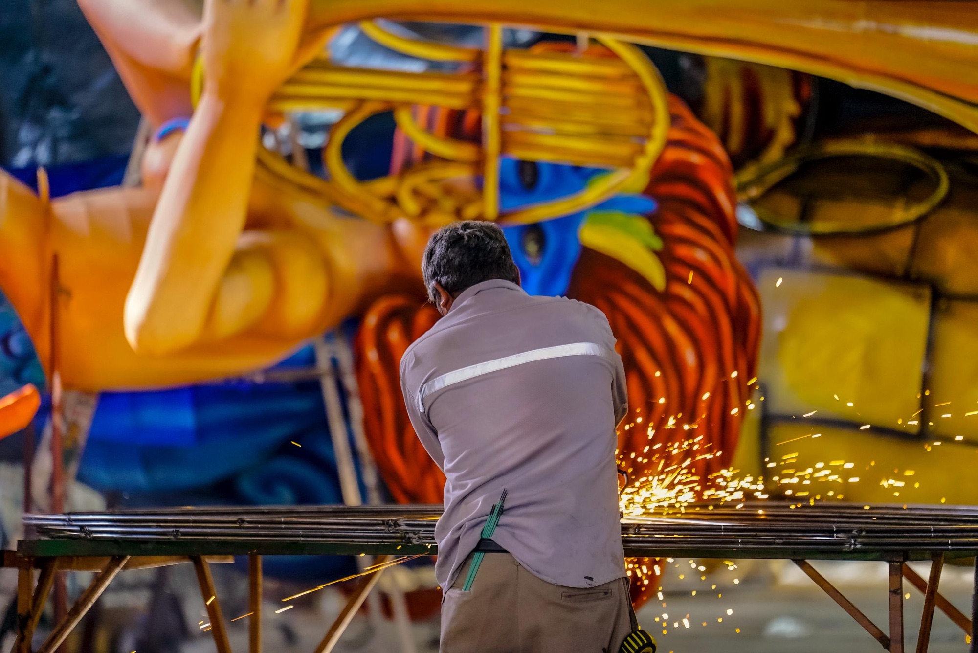 Un equipo interdisciplinario de 30 personas (artistas de Mazatlán y Monterrey) labora en los talleres, abarcando desde soldadura y estructuras hasta el tradicional papel maché y pintura.