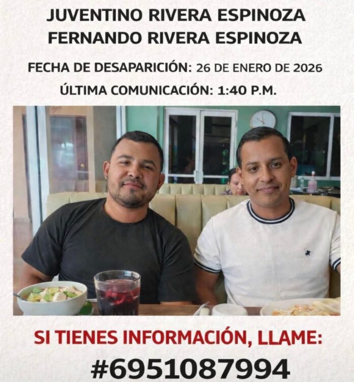 Familiares y amigos solicitan la colaboración de la ciudadanía para localizar a los hermanos Juventino y Fernando Rivera Espinoza, ambos con domicilio en la sindicatura de Palmillas.