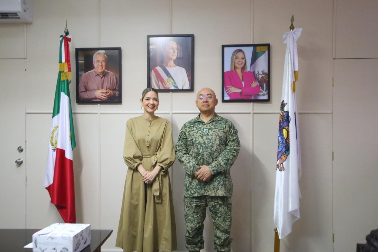 Durante la reunión, la Alcaldesa agradeció el trabajo permanente que realiza el Ejército Mexicano en colaboración con las autoridades locales, destacando los esfuerzos conjuntos para garantizar la seguridad y la defensa de la soberanía, acciones que contribuyen al bienestar de las familias mazatlecas.