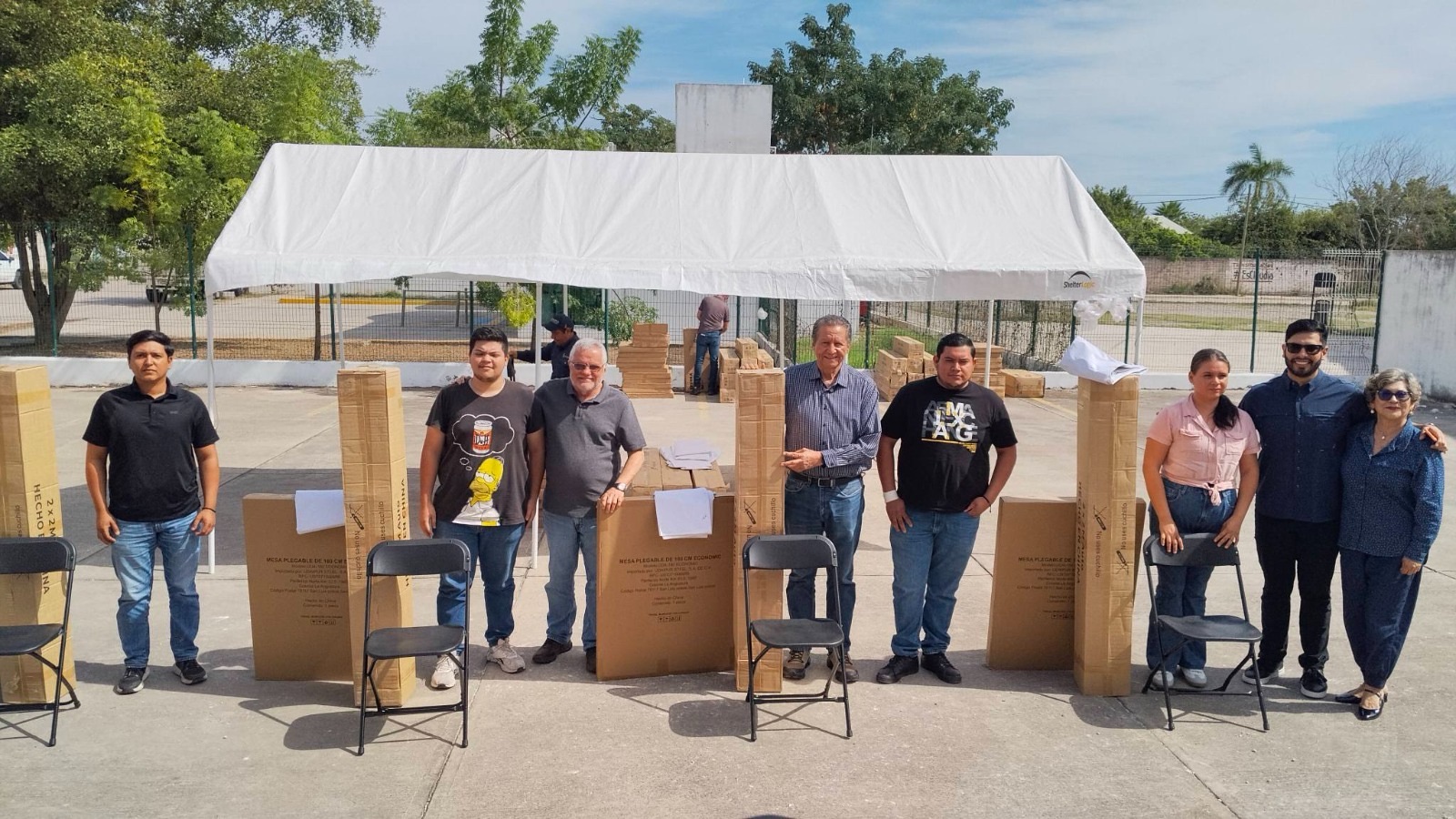 En el evento se hizo entrega de 90 equipos a 35 comerciantes del Tianguis Güilo Mentiras, con el objetivo de dignificar sus espacios de trabajo y mejorar la presentación de sus productos.