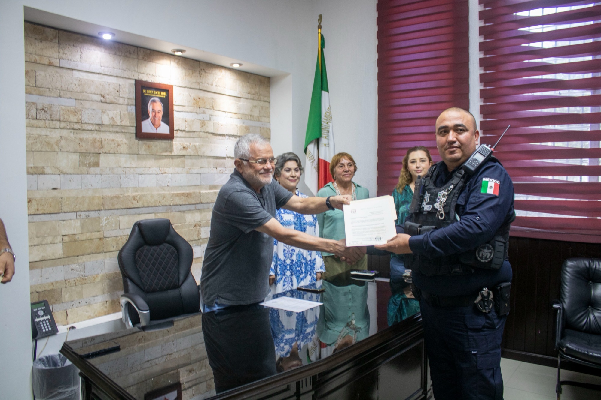 Durante la entrega del nombramiento, el Alcalde expresó su total confianza en que el nuevo mando aportará su capacidad, experiencia y máximo esfuerzo para responder a la alta responsabilidad que demanda la ciudadanía escuinapense.