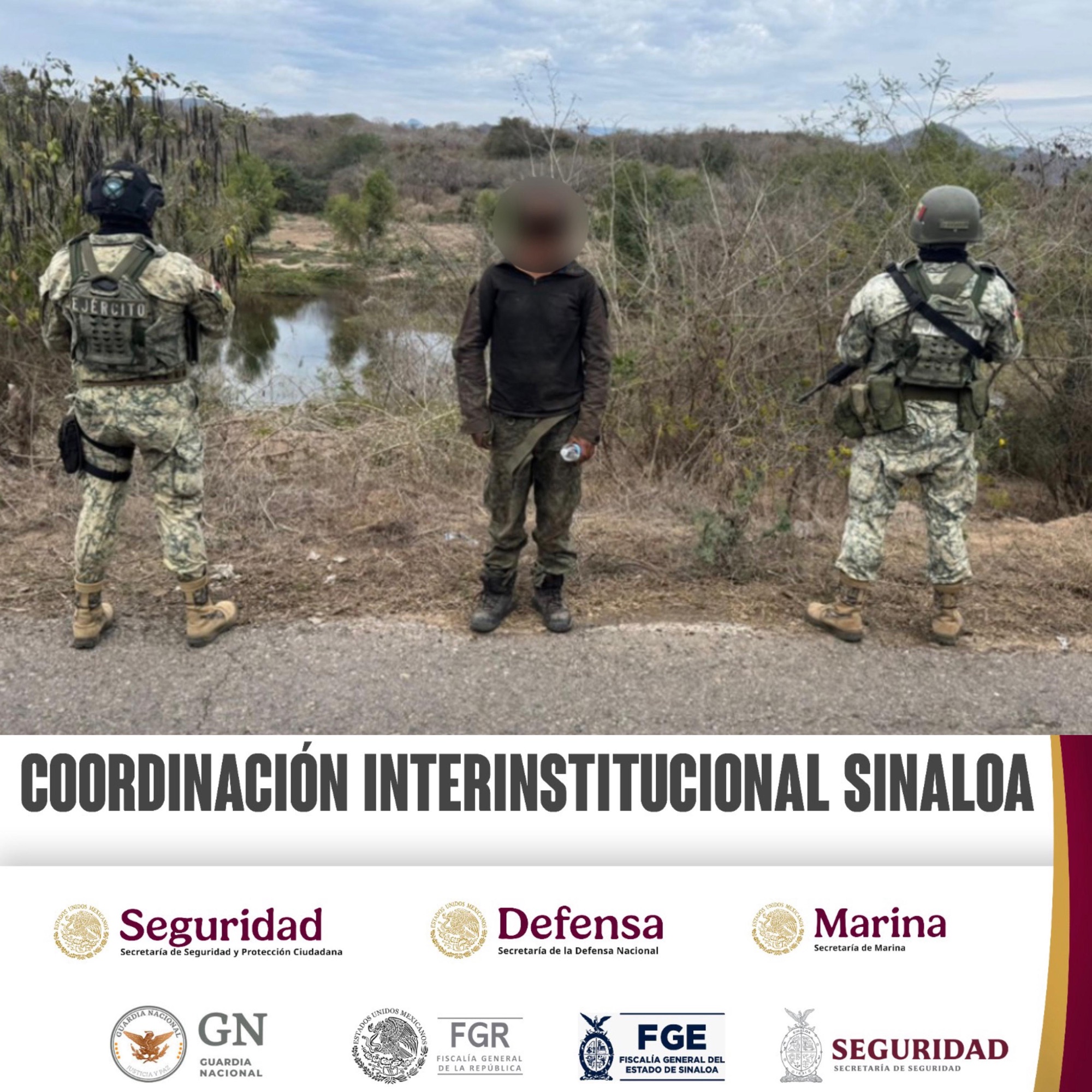 Elementos del Ejército Mexicano, en coordinación con la Guardia Nacional, la Secretaría de Marina, la Secretaría de Seguridad y Protección Ciudadana, la Fiscalía General de la República, la Fiscalía General del Estado y la Secretaría de Seguridad Pública de Sinaloa, a través de la Policía Estatal Preventiva, detuvieron a un civil a quien le aseguraron un arma larga, cargador y cartuchos en el municipio de El Rosario.