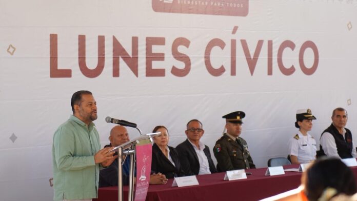 Es de beneplácito para el Gobierno Municipal contar con una niñez y juventud que se prepara día con día para convertirse en mejores profesionales de Mazatlán, enfatizó el Secretario del Ayuntamiento, Moisés Ríos Pérez, quien acudió en representación de la Presidenta Municipal, Estrella Palacios Domínguez, a la ceremonia de Lunes Cívico realizada en la Escuela Primaria Emiliano Zapata, ubicada en la colonia Ampliación Esperanza.