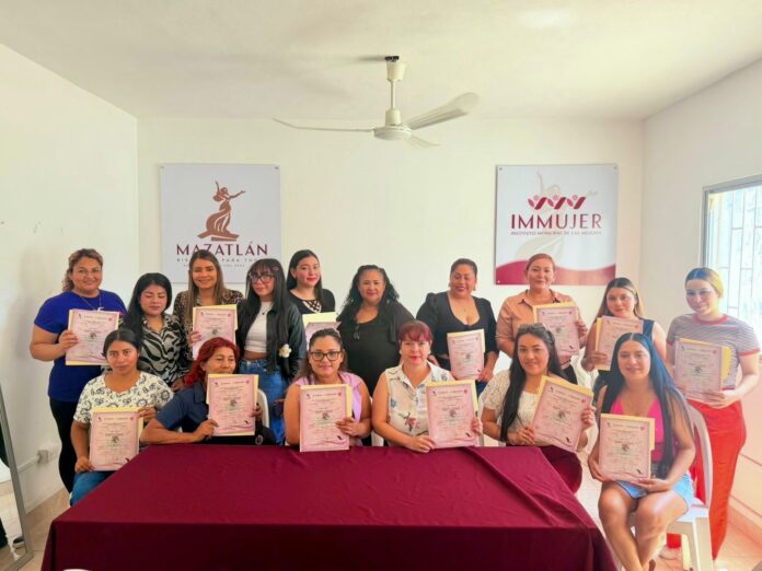 En este marco, la Directora del Instituto Municipal de la Mujer (IMMujer), Ana Marcela Herrera López, junto a María Francisca Morán Bastidas, Directora del ICATSIN plantel Mazatlán, llevaron a cabo la entrega de diplomas a mujeres que concluyeron satisfactoriamente los cursos de corte básico para dama y caballero, así como de aplicación de uñas postizas.