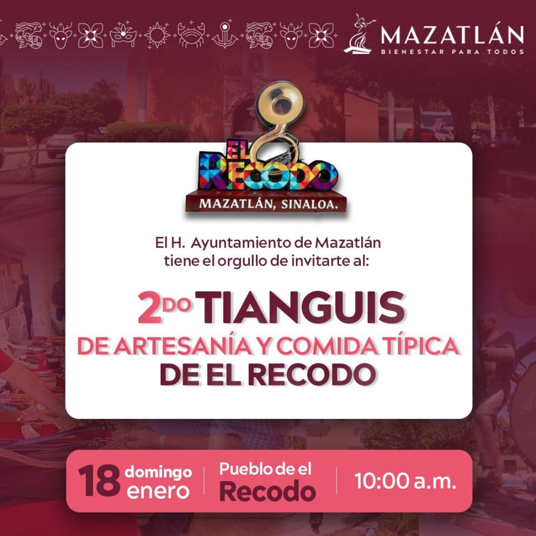 Refrendando el compromiso de impulsar la reactivación económica en la zona rural, el Gobierno Municipal de Mazatlán, encabezado por la Presidenta Estrella Palacios Domínguez, invita a la ciudadanía a participar en la celebración de la segunda edición del Tianguis de Artesanías y Comida Típica de El Recodo.