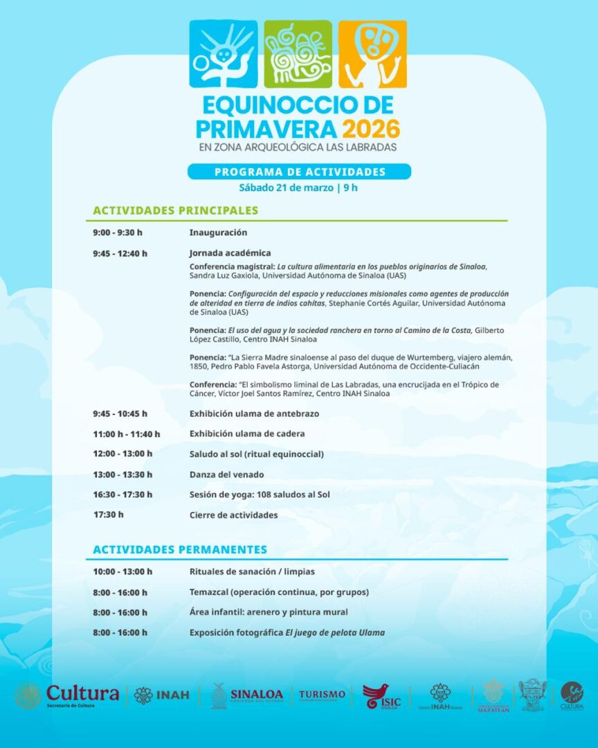 “Compartimos con ustedes la dinámica y el itinerario que se va a llevar a cabo durante ese día para aprovechar de manera académica, cultural, turística y gastronómica ese día para recibir la primavera en ese espacio que para los sinaloenses es tan importante”, afirmó.