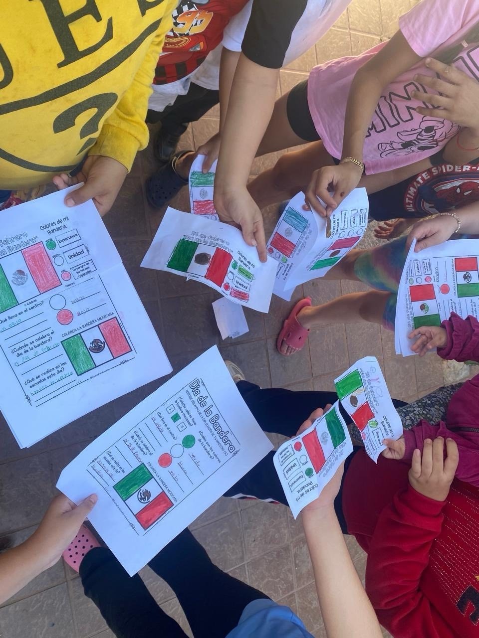 Tras la lectura, los pequeños realizaron una actividad cívica en la que elaboraron banderas de México, aprendiendo sobre el significado de sus colores y símbolos.
