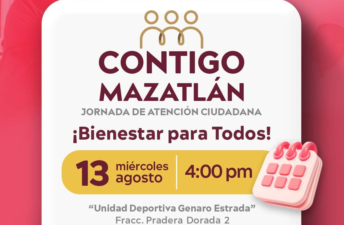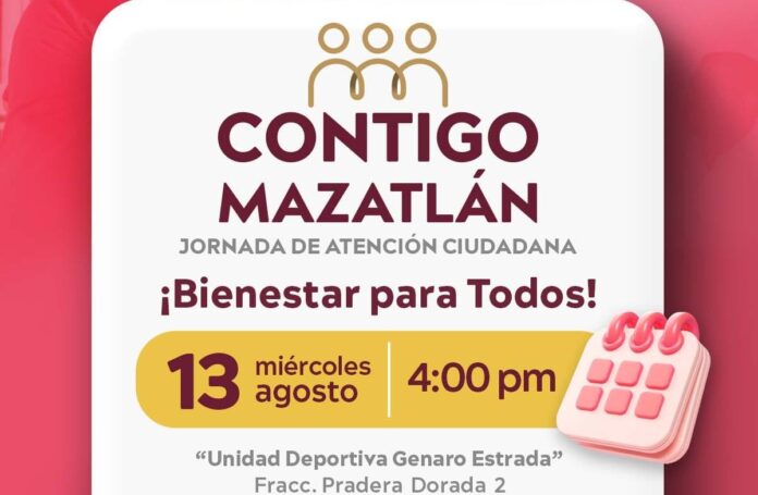 La Presidenta Municipal, Estrella Palacios Domínguez, llevará la jornada de atención ciudadana “Contigo Mazatlán” al fraccionamiento Pradera Dorada II, este miércoles 13 de agosto, a partir de las 16:00 horas.