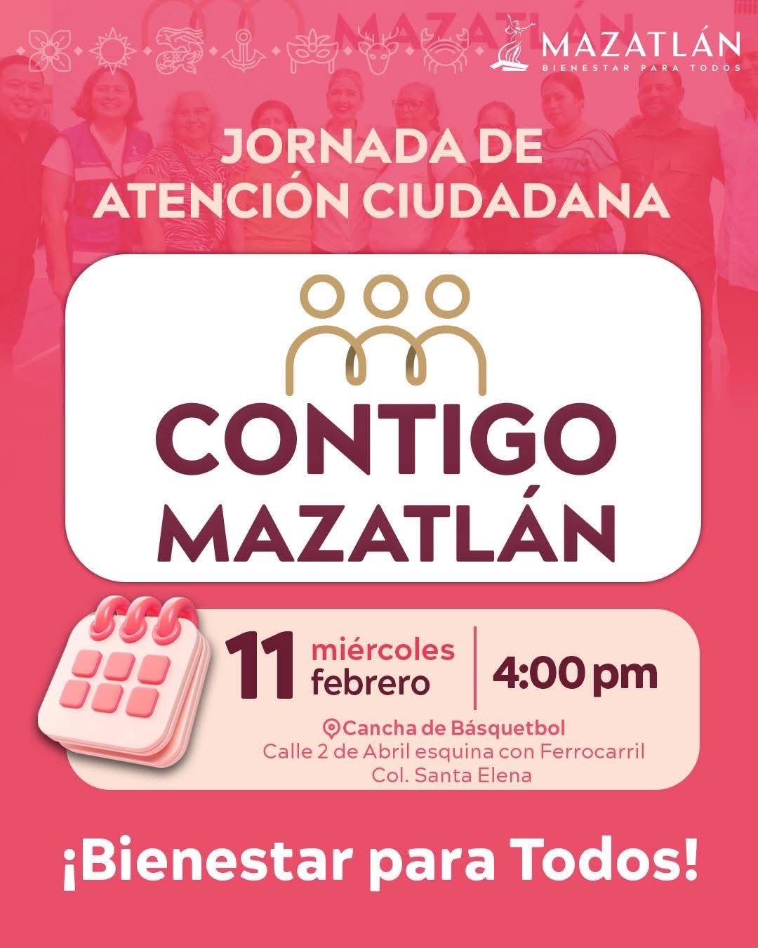 La Presidenta Municipal, Estrella Palacios Domínguez, acompañada por su Equipo del Bienestar, conformado por directoras y directores del Ayuntamiento y paramunicipales, encabezará la jornada de atención ciudadana “Contigo Mazatlán”, con el objetivo de mantener un gobierno cercano a la gente y atender de manera directa las necesidades de la población.