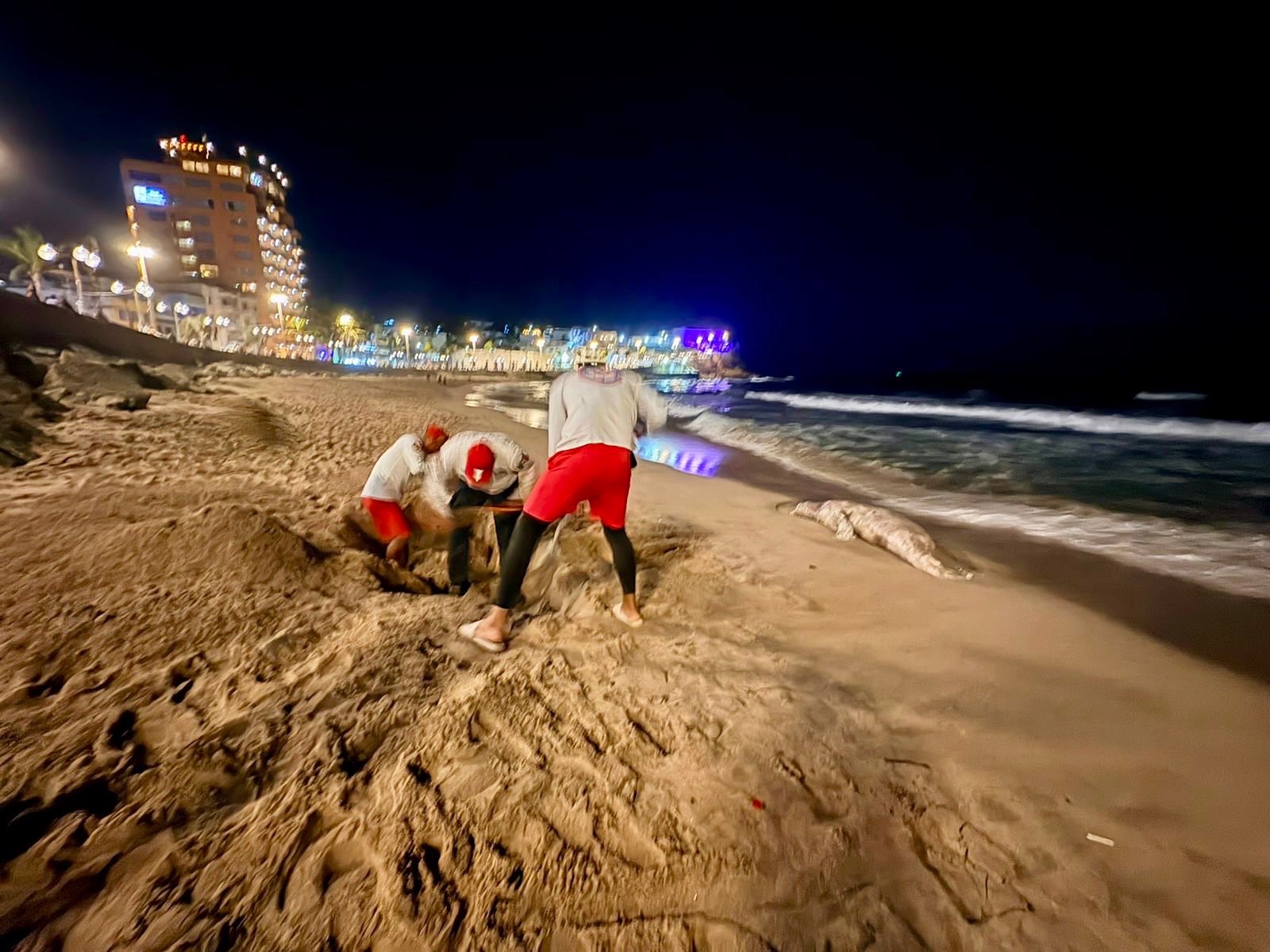 Con el objetivo de evitar una mala impresión entre los bañistas, así como posibles olores y afectaciones a la imagen del destino turístico, el comandante del grupo de salvavidas, Gustavo Espinoza, informó que se procedió a sepultar el cuerpo del mamífero marino en la zona.