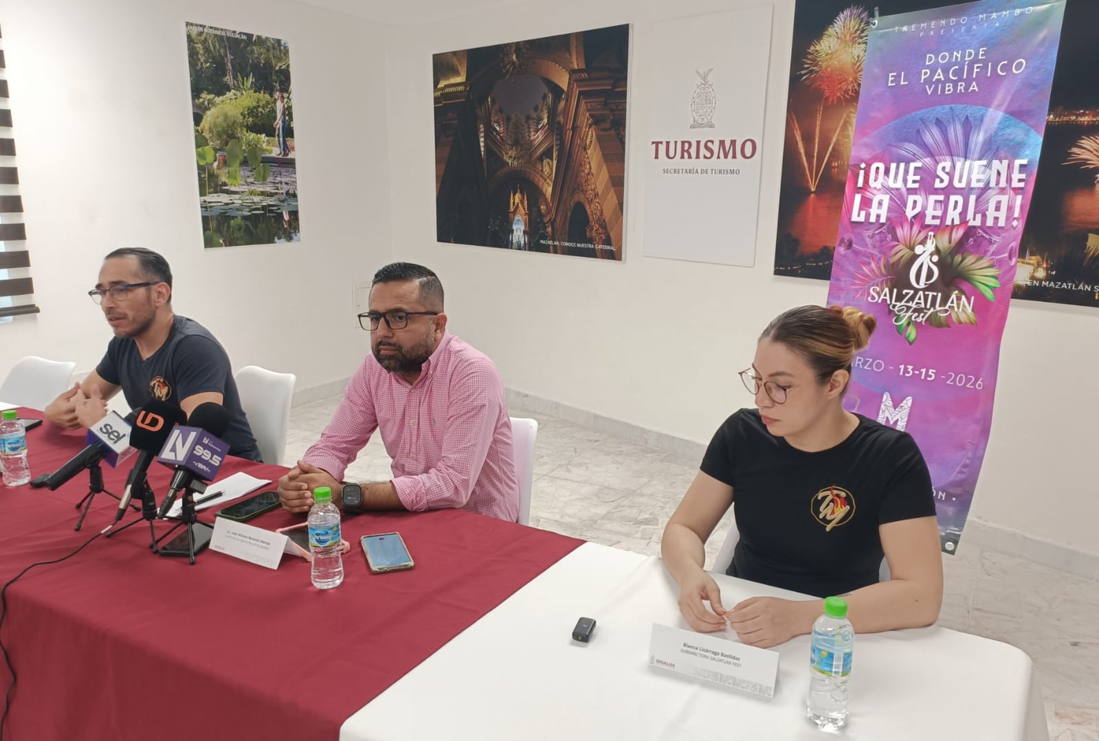 A la rueda de prensa también asistieron Bianca Lizárraga Bastidas, subdirectora del Salzatlán Fest y Jorge Arturo Morales García, uno de los patrocinadores del festival.