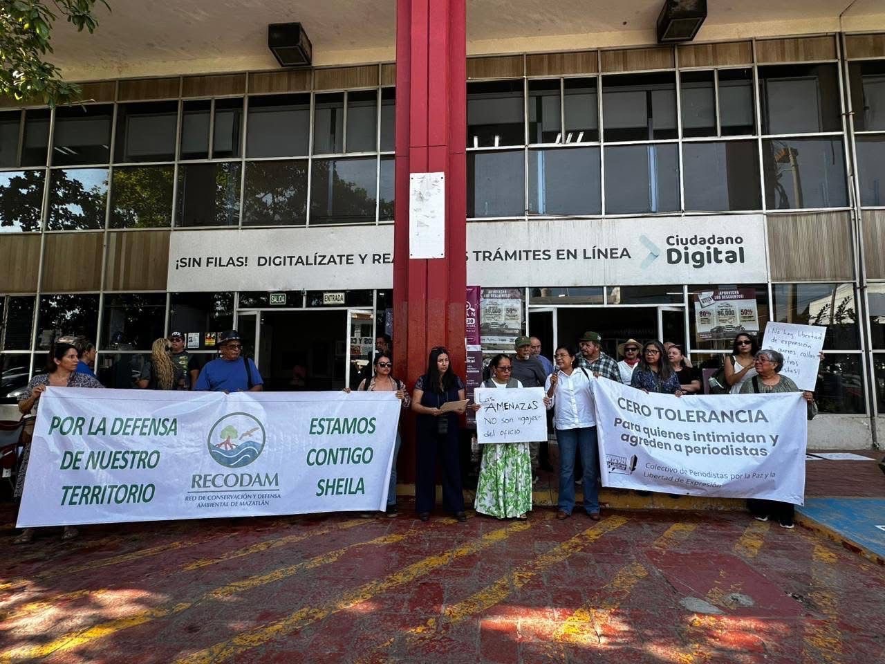 Al acto de protesta acudieron Sibely Cañedo y Raquel Zapien, cofundadoras del Colectivo de Periodistas por la Paz y la Libertad de Expresión, quienes acompañaron a Sheila Arias a una reunión de seguimiento con el Vicefiscal de la zona sur, Isaac Aguayo Roacho, para preguntar por avances de su caso, del que ya hay denuncia presentada.