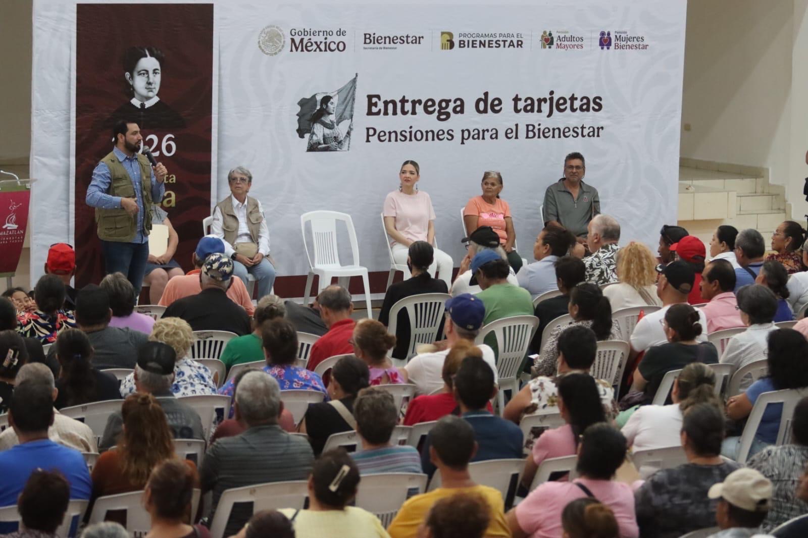 En su mensaje, la alcaldesa destacó que estos programas representan justicia social para las y los mexicanos, impulsados por la Presidenta de la República, la Doctora Claudia Sheinbaum Pardo, y el Gobernador del Estado, el Doctor Rubén Rocha Moya. “Aquí en el municipio de Mazatlán, gracias a los programas de adultos mayores, de las mujeres, de la educación, del Bienpesca, de personas con discapacidad, recibimos alrededor de 2 mil 800 millones de pesos al año, que eso va para la gente del pueblo de Mazatlán, van directamente los apoyos para ustedes, sin intermediarios, como se hacía antes; así es que nosotros estamos sumamente agradecidos porque tenemos el respaldo federal, y también tenemos el respaldo de nuestro Gobernador, el Doctor Rubén Rocha Moya”, dijo.
