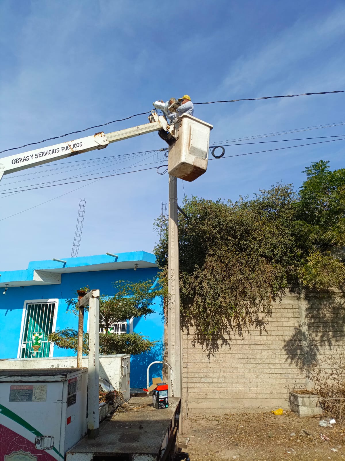 Como parte de las acciones para fortalecer la seguridad y el bienestar de la ciudadanía, personal eléctrico de la Dirección de Obras Públicas llevó a cabo la rehabilitación del alumbrado público en la colonia Pueblo Nuevo.
