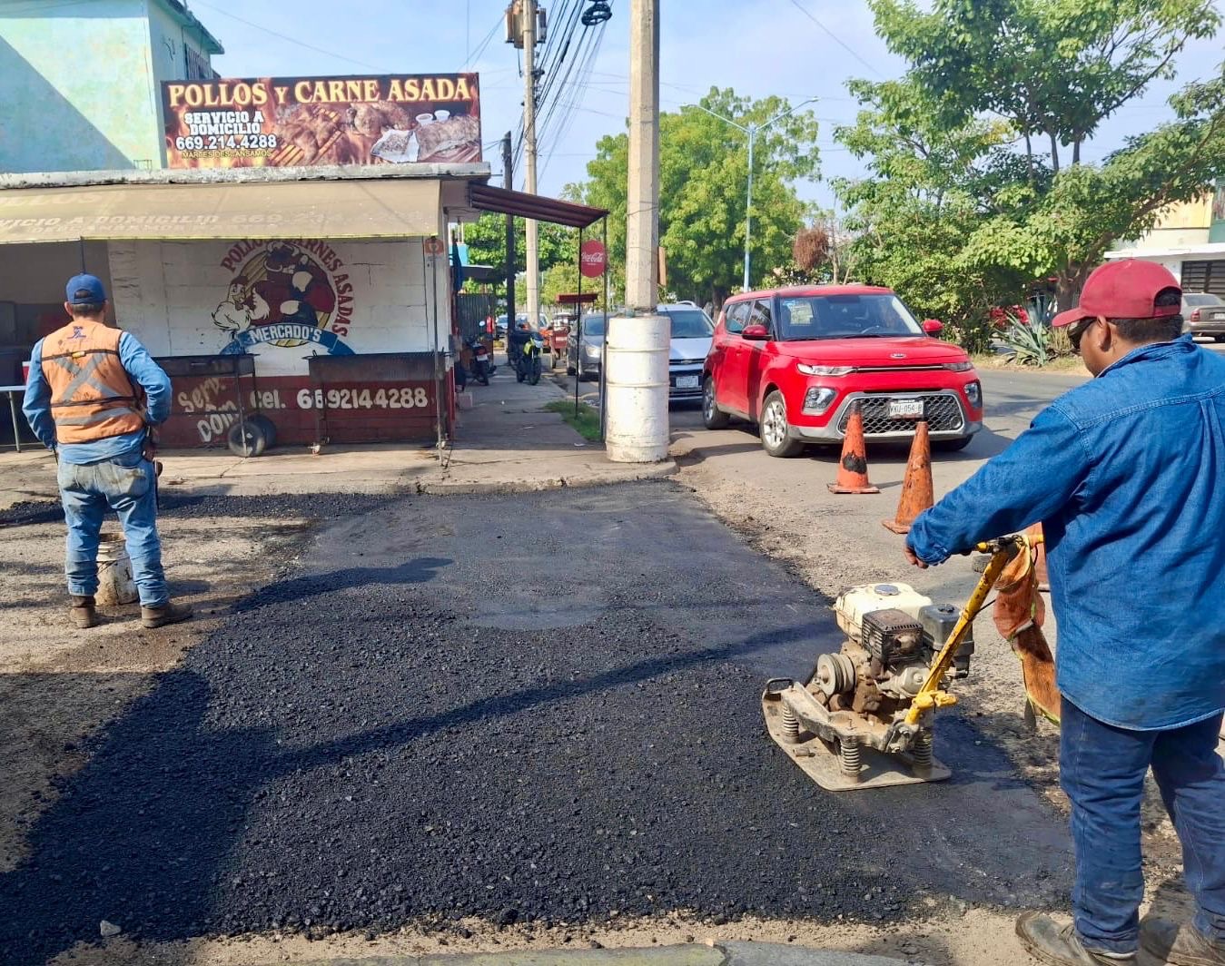 Como parte del Programa Permanente de Bacheo que impulsa el Gobierno de la Presidenta Estrella Palacios Domínguez, la Dirección de Obras Públicas del Ayuntamiento de Mazatlán continúa atendiendo de manera puntual las vialidades que presentan daños en la carpeta asfáltica.