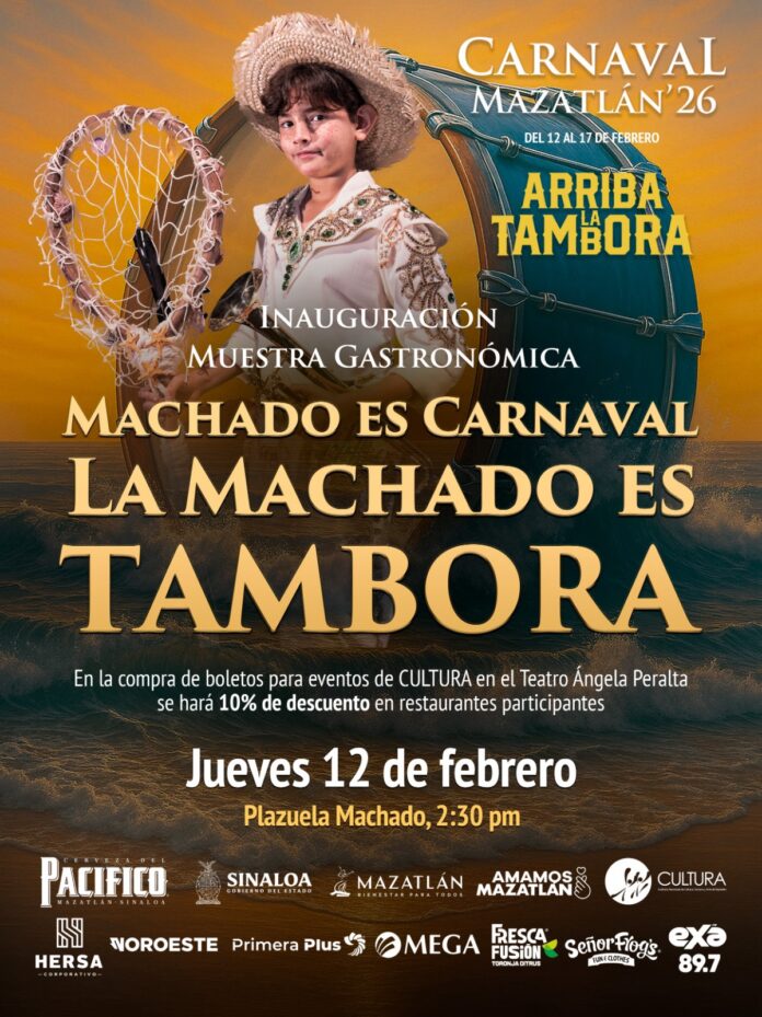 El Carnaval Internacional Mazatlán 2026 ¡Arriba la Tambora! también se vive con el paladar, y este jueves 12 de febrero a las 2:30 PM, la gran fiesta comienza en grande con la inauguración de la Muestra Gastronómica “Machado es Carnaval, la Machado es Tambora”. La entrada es libre.