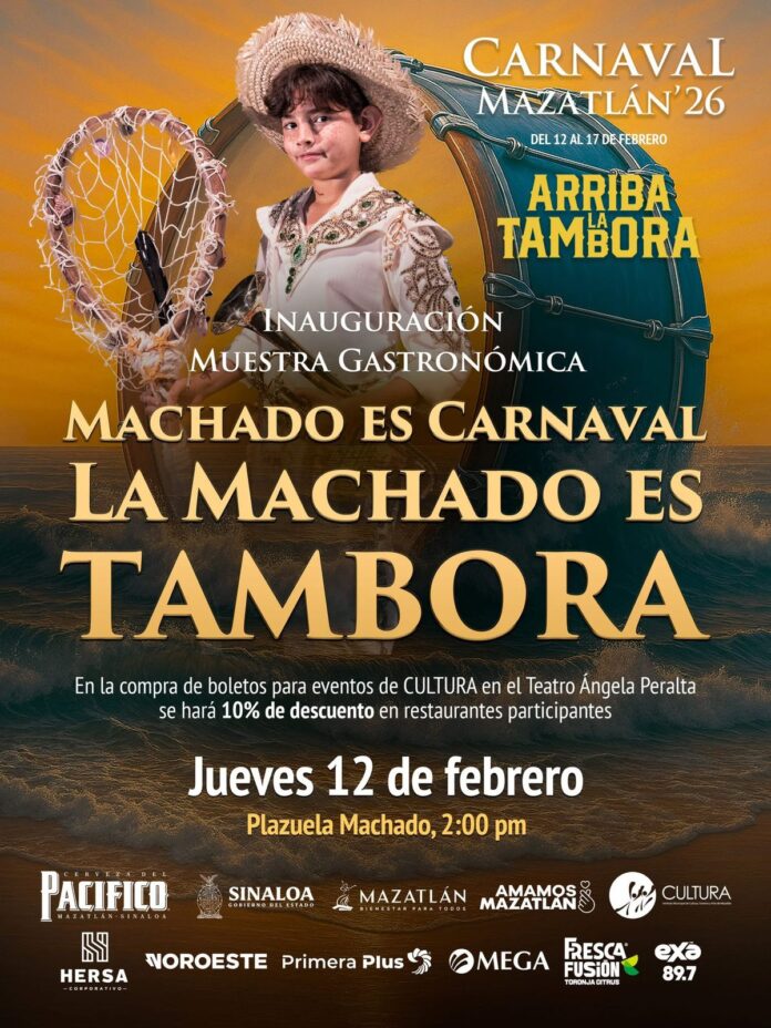 El corazón del Centro Histórico de Mazatlán se vestirá de fiesta del 12 al 17 de febrero, al recibir la muestra gastronómica “La Machado es Carnaval, la Machado es Tambora”. Este evento busca consolidar a la emblemática Plazuela Machado como el punto de encuentro familiar por excelencia durante la máxima fiesta porteña.