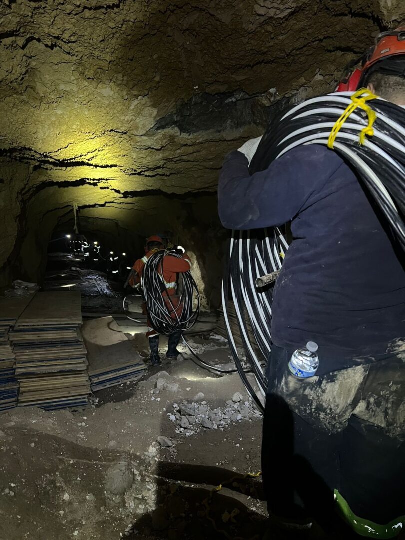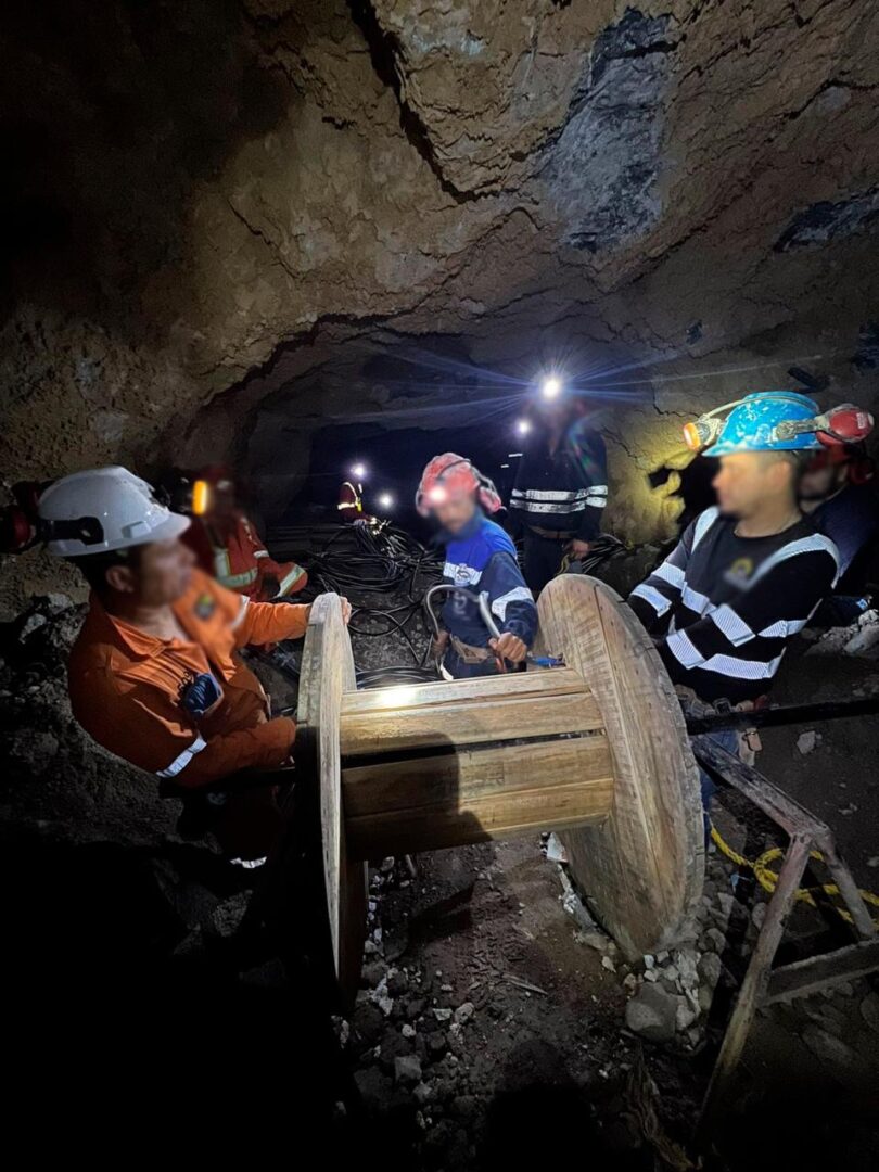 En el punto del tapón del crucero, se mantiene la limpieza de los jales y el proceso de sellado mecánico. Estos trabajos son para dar firmeza a la zona afectada y mitigar riesgos operativos. De manera complementaria, se ejecutó el chifloneo en el techo, una técnica que utiliza agua o aire a presión para desprender rocas o material suelto.
