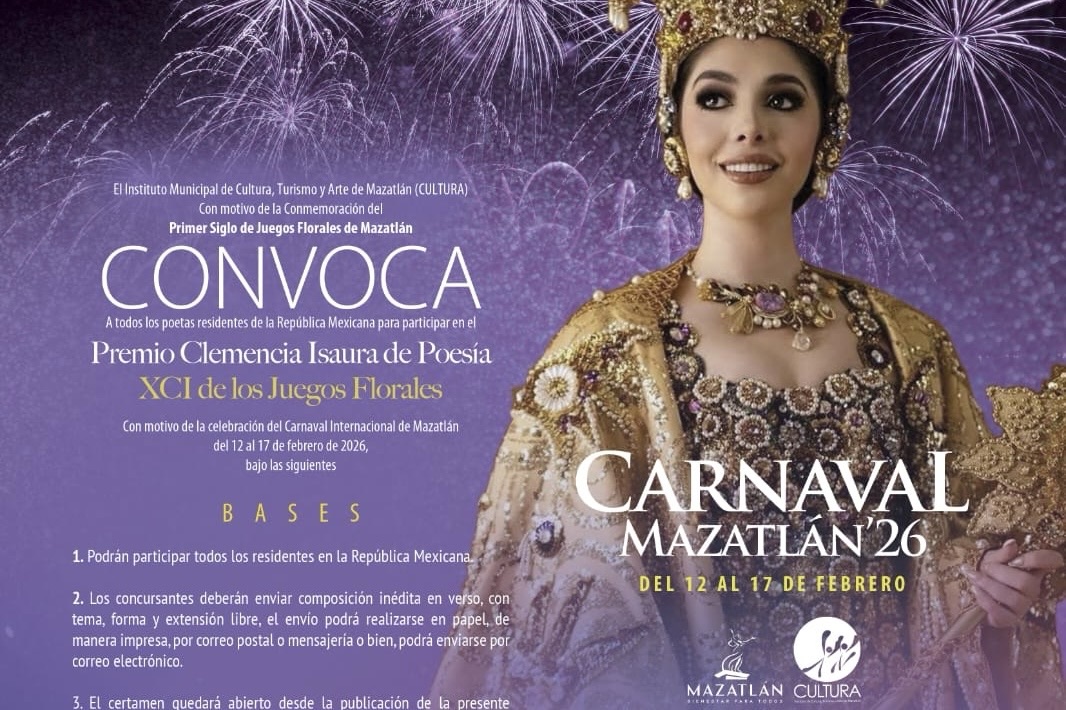 El fallo se dará el 23 de enero en lugar y hora por confirmar. El autor o autora del poema ganador recibirá un premio de 100 mil pesos, la flor natural y el privilegio de coronar el próximo 13 de febrero de 2026 a la Reina de los Juegos Florales del Carnaval Internacional de Mazatlán 2026 “Arriba la Tambora”.