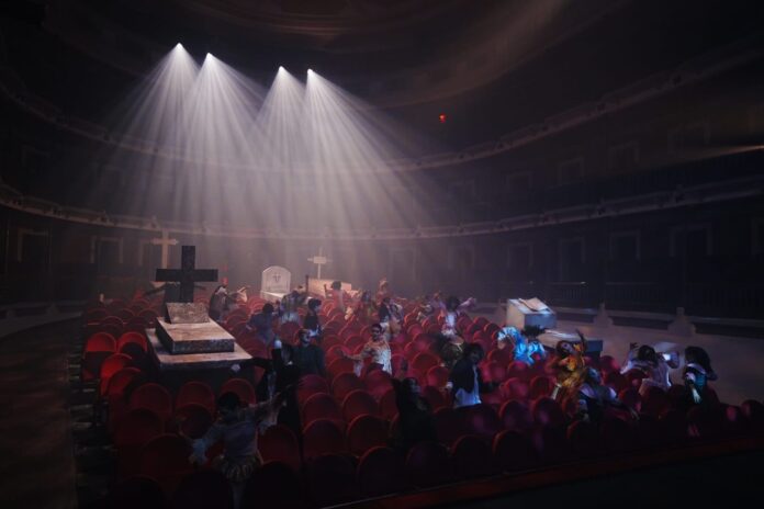 En una intervención artística audaz y emotiva, la Escuela Profesional de Danza de Mazatlán (EPDM) transformó la butaquería del Teatro Ángela Peralta en un espacio escénico insólito donde los límites entre público y escenario desaparecieron. Entre luces que descendían y la presencia simbólica de cruces y lápidas, los bailarines emergieron entre las filas de asientos para crear una atmósfera envolvente de misterio, memoria y celebración.