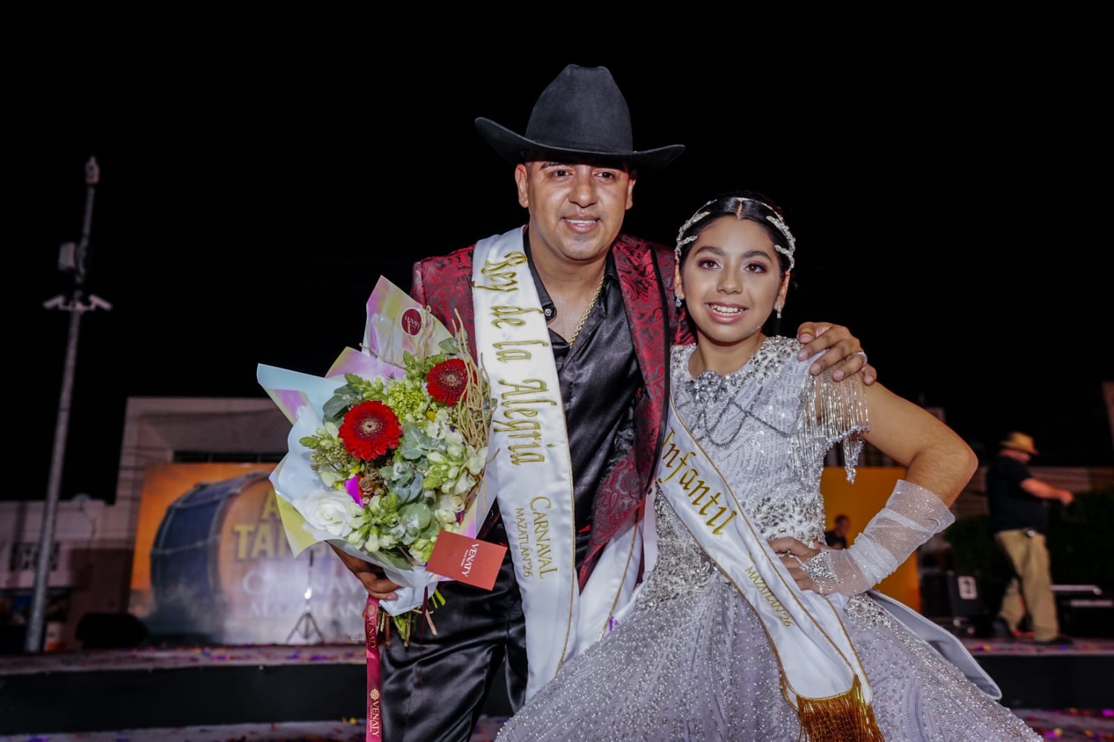 En una noche de máxima expectación en la Plazuela República, José Javier Osuna Samano “El Chiras” fue proclamado Rey de la Alegría del Carnaval Internacional de Mazatlán 2026 “Arriba la Tambora” al contabilizar un total de 1,316,207 votos, mientras que la pequeña Eileen Cruz Corona se alzó como la nueva Reina Infantil con la cifra de 1,111,506 votos.