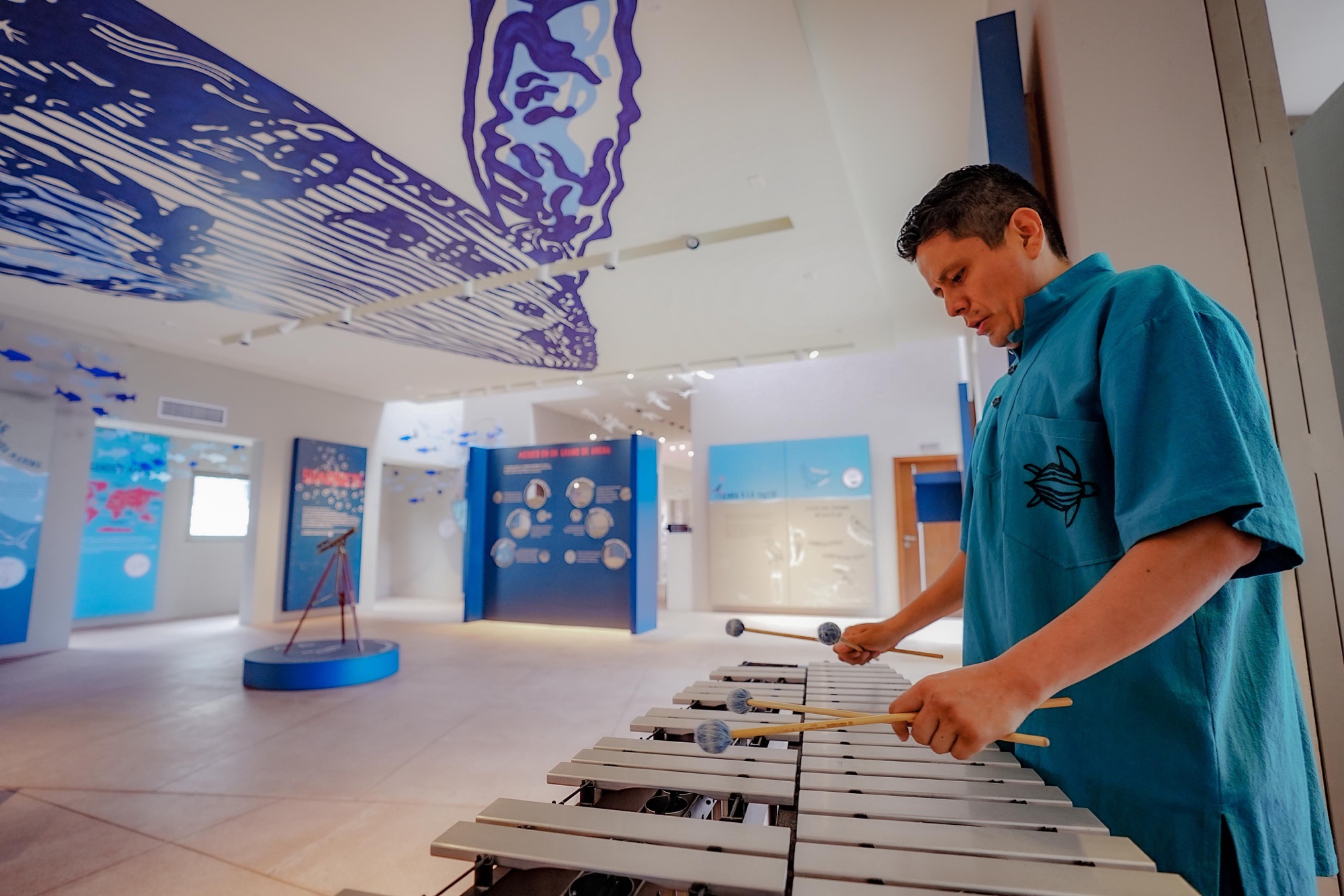 Con su vibráfono el maestro Max Carreón ofreció este sábado una “intervención musical” en el Museo Casa del Marino de Mazatlán, buscando crear un ambiente melancólico y relajante para el público. El músico reconocido como uno de los mejores percusionistas en México, explicó que la intención de su presentación era utilizar el sonido peculiar del vibráfono, para ambientar el espacio de una manera distinta a un concierto tradicional.