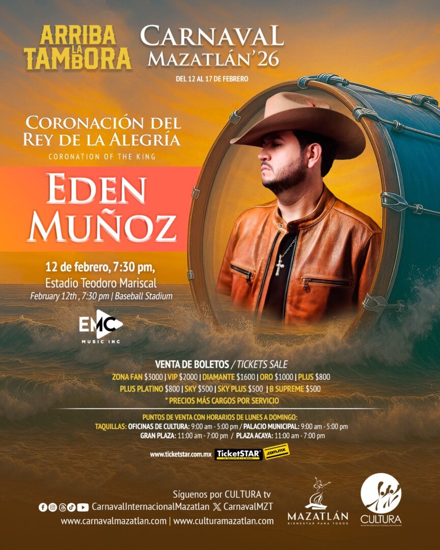 El sábado 14, en la esperada coronación de la Reina del Carnaval, el escenario vibrará con la voz y energía de Yuridia, con su “Tour 2026 Sin Llorar”. El lunes 16 de febrero, en la coronación de la Reina Infantil, el Estadio “Teodoro Mariscal” recibirá a las cantantes Belinda y Lara Campos. Ese mismo día, en el tradicional lunes de Carnaval, también se presentará el reconocido intérprete sinaloense Julio Preciado, consolidando una programación que promete un Carnaval inolvidable.