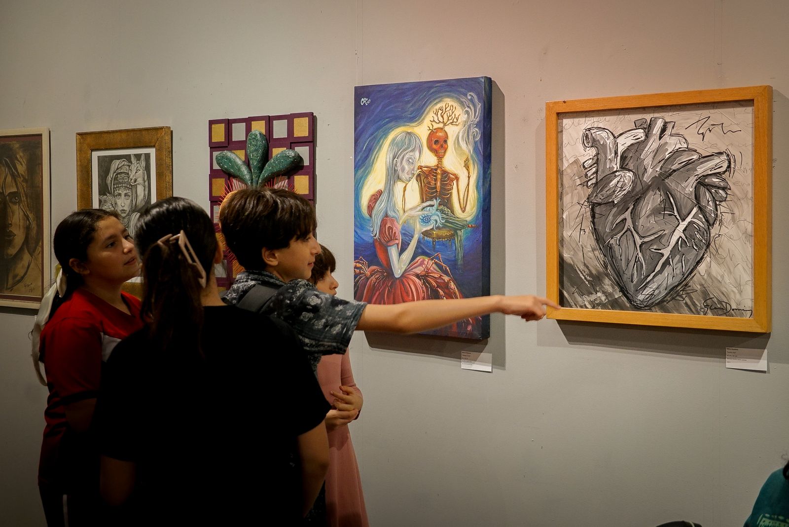 Entre las obras se encuentran retratos simbólicos, naturalezas reinventadas, corazones e iconografías religiosas reinterpretadas, figuras marinas y piezas tridimensionales que sorprenden por su fuerza visual y conceptual.