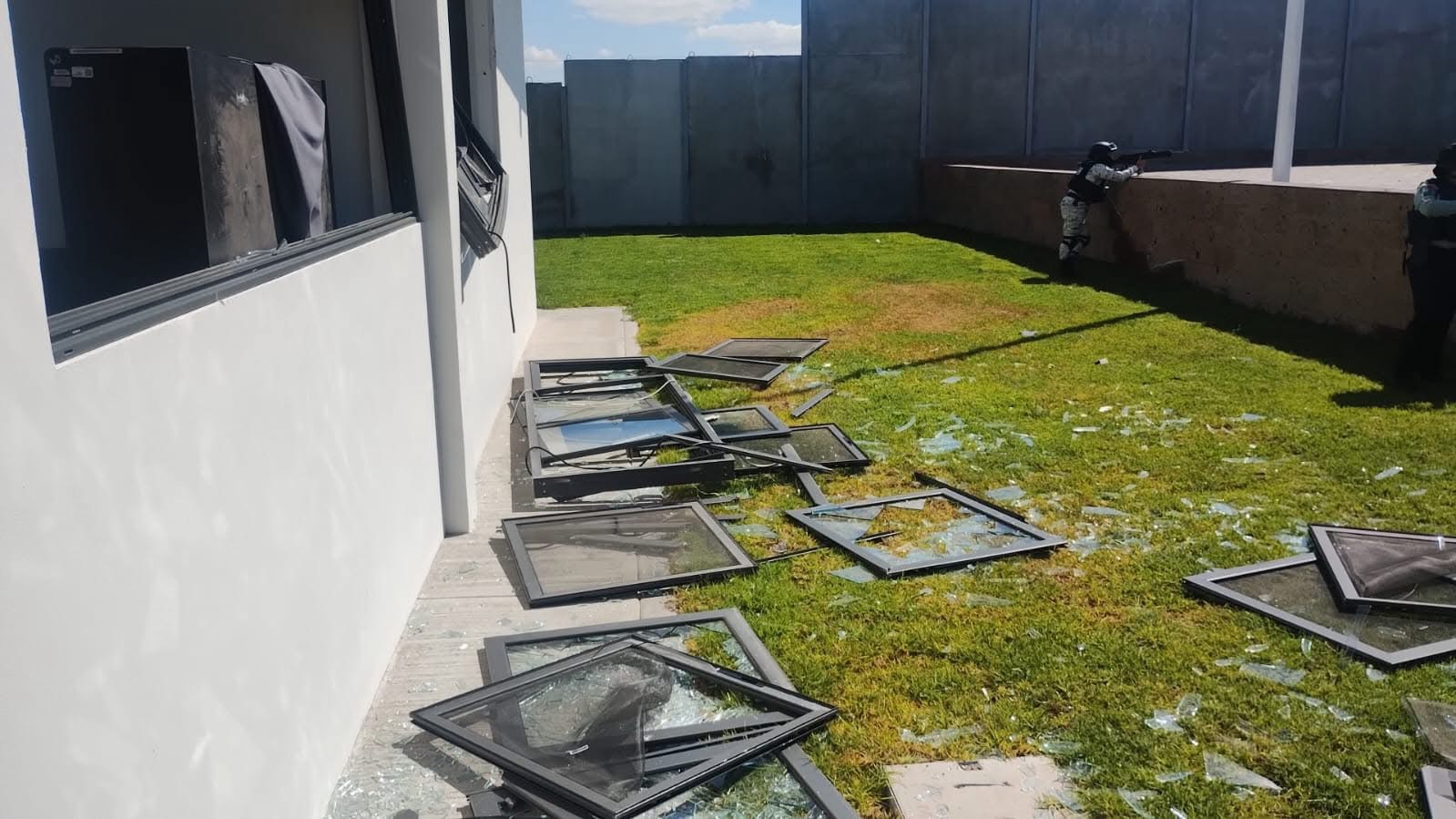 Asimismo, se aprecian daños a las instalaciones en cristales y demás áreas dentro del lugar que resguardaba a los elementos federales.