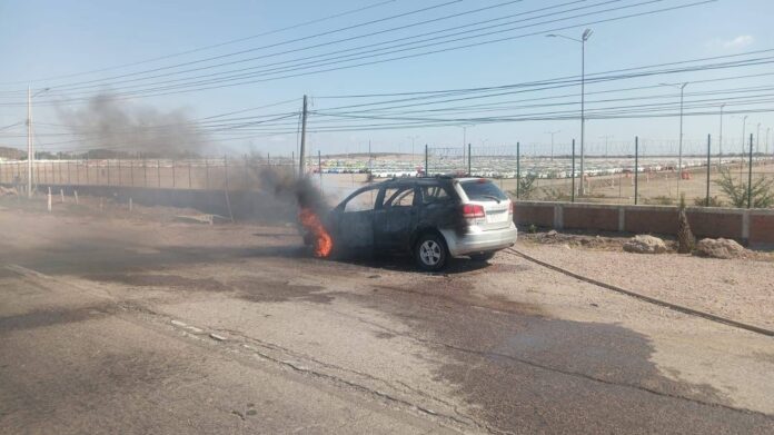 Camioneta queda consumida totalmente por el fuego; se movilizan cuerpos de rescate