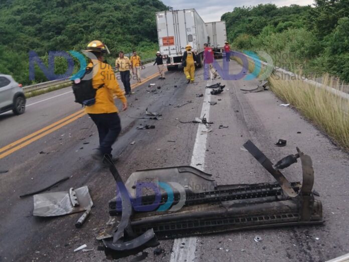 Dos personas lesionadas y miles de pesos en daños materiales, es el saldo del choque por alcance entre dos trailers sobre la autopista Mazatlán-Tepic, en el tramo Escuinapa-Acaponeta.