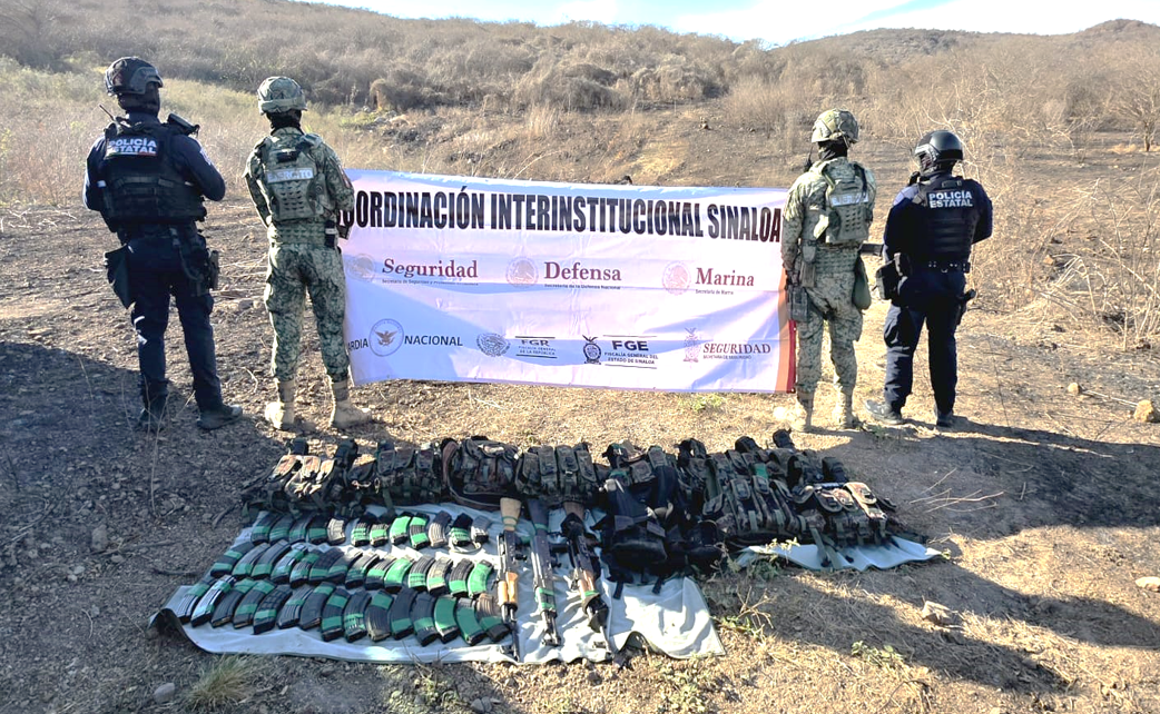 En El Roblito, localizan armas, cargadores, cartuchos y chalecos tácticos