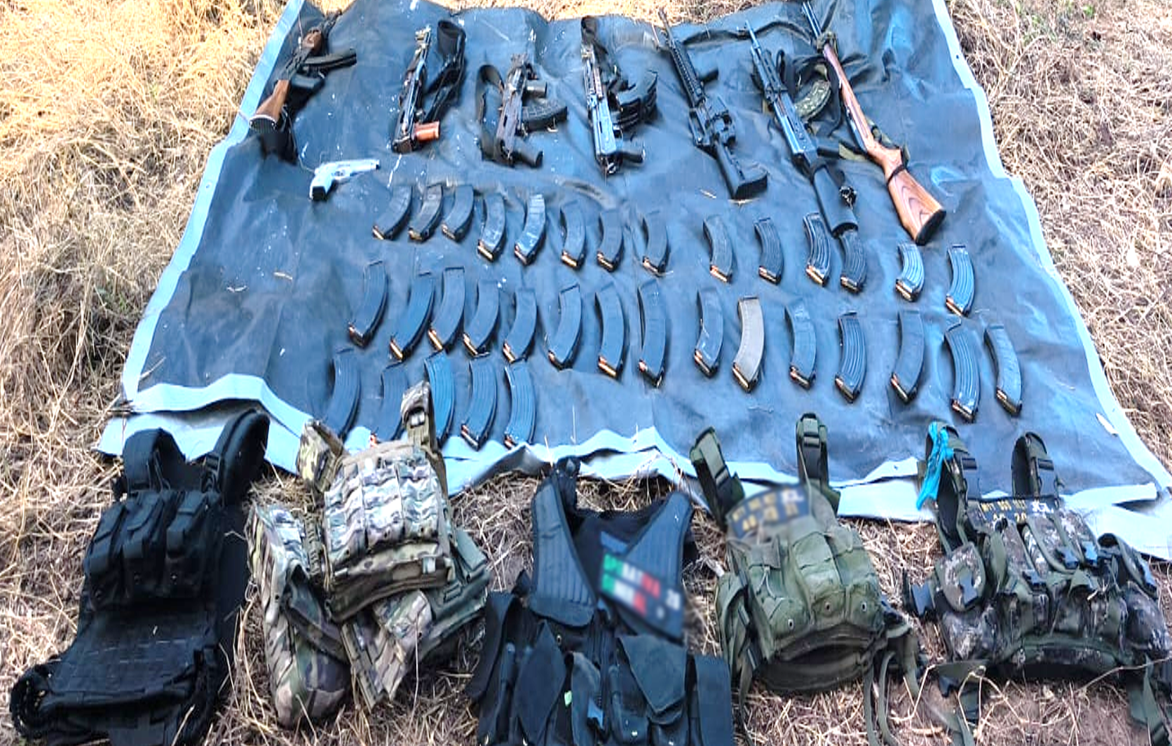 Mientras tanto, en Elota, elementos del Ejército Mexicano localizaron e inhabilitaron un campamento, aseguraron tres armas largas, 39 cargadores y 1,251 cartuchos.
