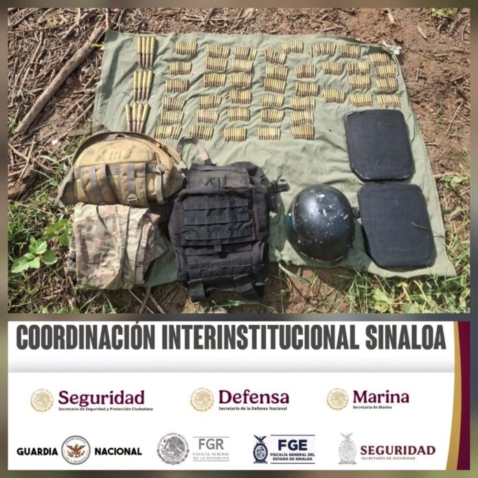 Personal del Ejército Mexicano, en coordinación con la Guardia Nacional, la Secretaría de Marina, la Secretaría de Seguridad y Protección Ciudadana, la Fiscalía General de la República, la Fiscalía General del Estado y la Secretaría de Seguridad Pública Estatal, a través de la Policía Estatal Preventiva, aseguraron municiones y equipo táctico en el municipio de Rosario.