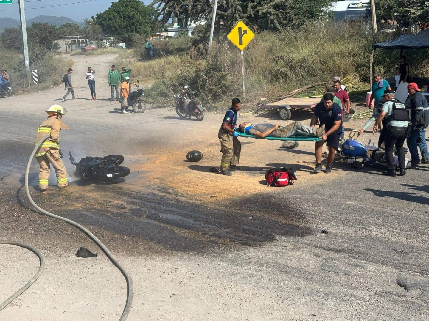 Dos jóvenes lesionados y miles de pesos en daños materiales, es el saldo del choque e incendio entre dos motocicletas, debido a la fricción del golpe una de las motocicletas fue consumida por el fuego.