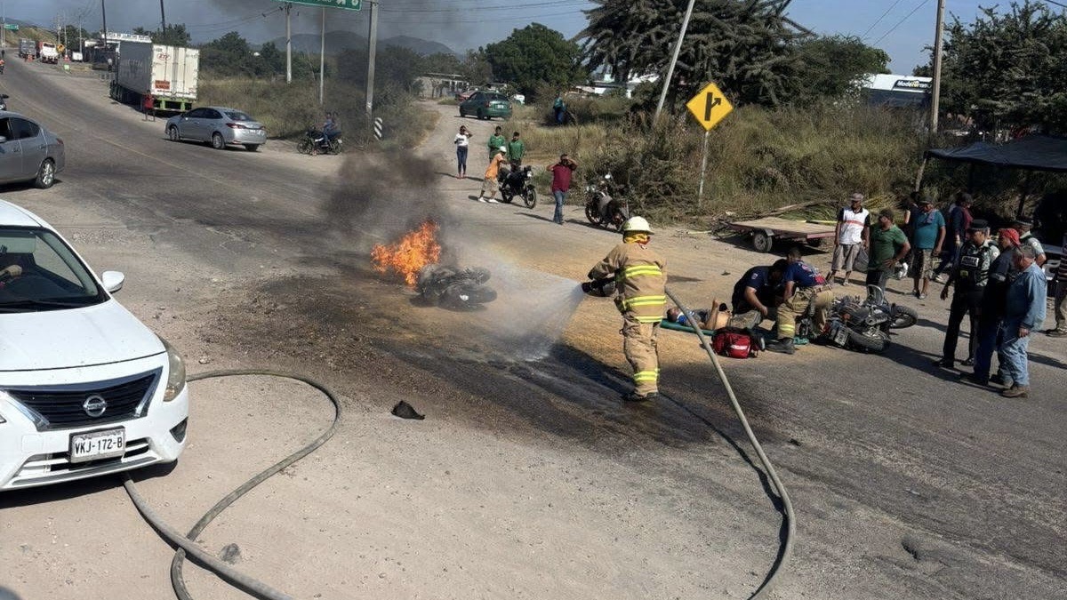 Al sitio acudieron elementos de Bomberos Veteranos Villa Unión, quienes al llegar se percataron que una de ellas incendiándose, esto debido a la fricción causado por la unidad contra el asfalto, la situación que fue controlada de inmediato.