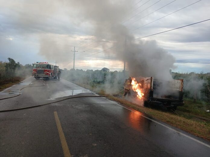 Se quema camioneta en la carretera estatal, fue pérdida total