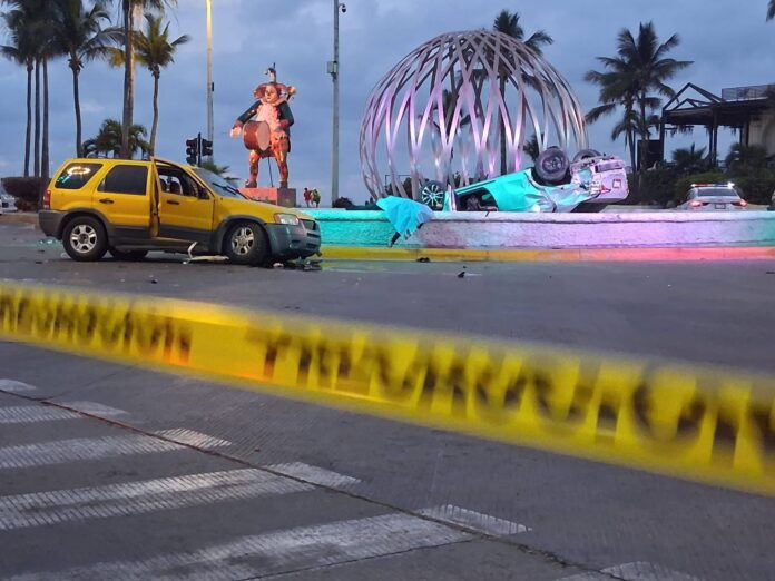 Un hombre sin vida y miles de pesos en daños materiales, es el saldo del choque entre dos camionetas justo donde se encuentra la fuente frente a Valentinos en el puerto de Mazatlán.