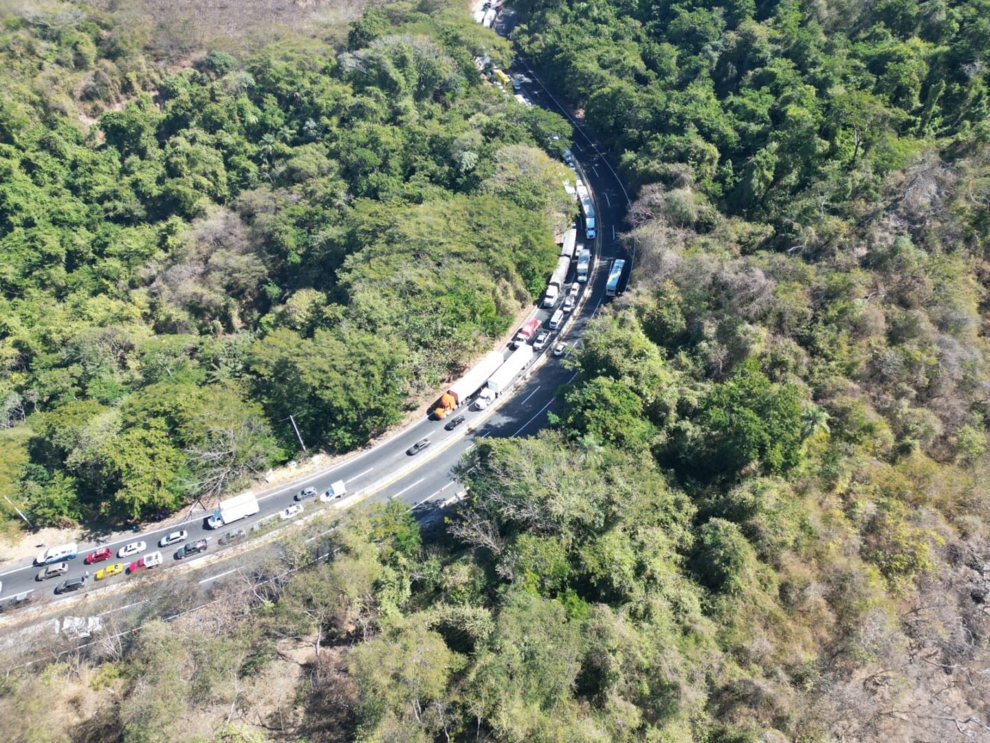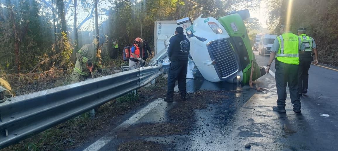 Elementos de Protección Ciudadana y Bomberos con sede en la base central de Tepic tomaron informe del suceso y se dirigieron al lugar señalado, donde se encontró un tráiler de color blanco, mismo que sufrió una volcadura, impactando contra la barra de contención.