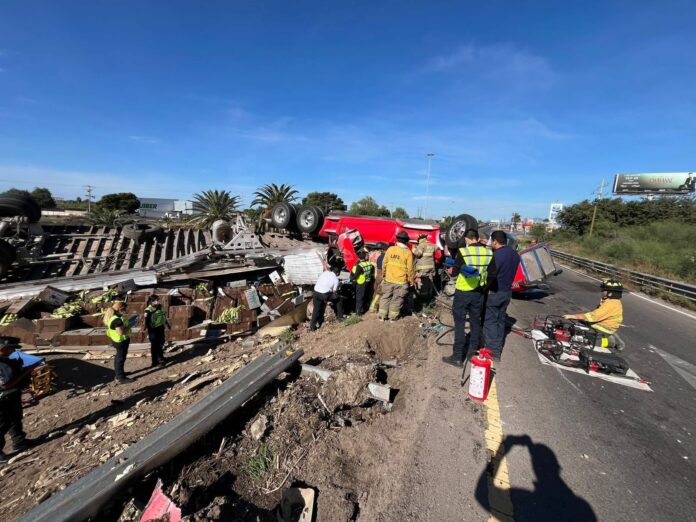 Miles de pesos en daños materiales y un gran susto para el chofer, es el resultado de la volcadura de un tráiler cargado con elotes en la zona de El Trébol, a la salida norte de la ciudad de Culiacán.