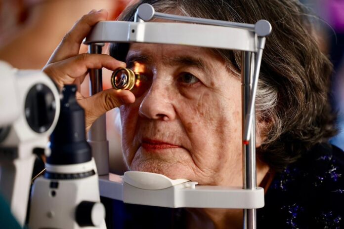 Durante la valoración, personal médico especializado realiza revisiones individuales, que incluyen la dilatación de la pupila y la integración del expediente clínico.