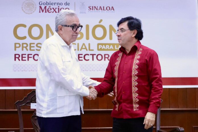 Al participar en la audiencia pública convocada por la Comisión Presidencial para la Reforma Electoral, celebrada en el recinto del Congreso del Estado, el gobernador Rubén Rocha Moya consideró que es un momento propicio para promover una iniciativa en este sentido, dado el buen ambiente y condiciones favorables para concretar una reforma electoral de gran calado, que nos permita transitar a los mexicanos por una senda auténticamente democrática.