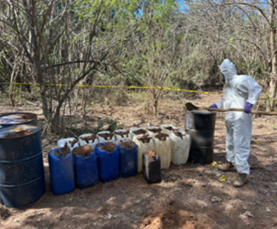 En Culiacán, Sinaloa, en los poblados de Imala, Lo de Duarte y el Cedrito, elementos del Ejército Mexicano localizaron e inhabilitaron tres áreas de concentración de material para la elaboración de metanfetamina, donde aseguraron 2,905 litros de sustancias químicas, lo que generó la mayor afectación económica reportada.